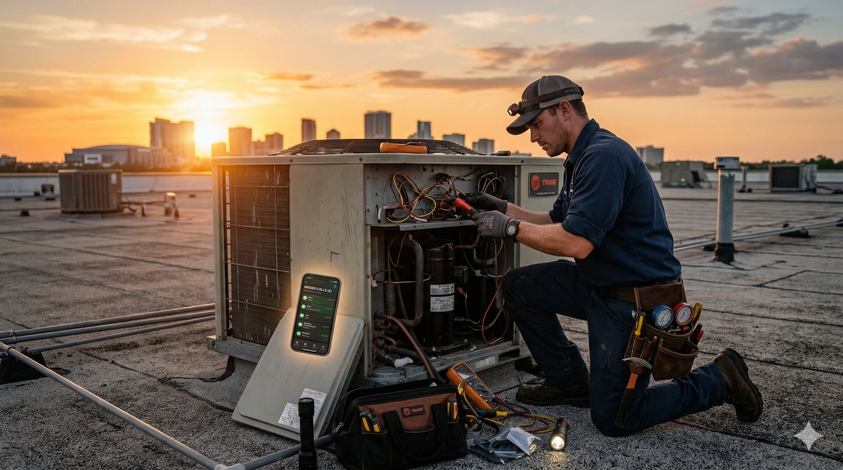 You're elbow-deep in a condenser unit. Phone buzzes. By the time you can answer, they've called someone else.